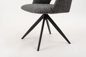 デザインと利便性を兼ね揃えた回転チェア 曲線を活かしたボリューム感ある本体と、放射状に伸びた軽快な印象を感じさせる脚部が融合した回転チェア。腰部に抜きを作ることにより重量感を軽減しました。座面が回転するので、座ったまま身体の向きを変えることができ、テーブルへの出入りもしやすくなります。