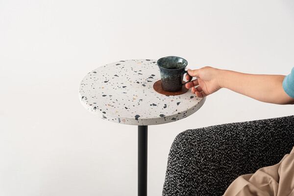 人造大理石(テラゾー)を使用したサイドテーブル。