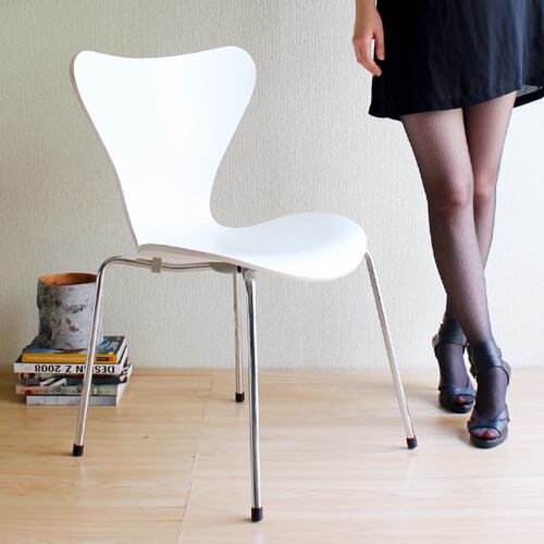 デンマークの巨匠、アルネ・ヤコブセンの代表作「セブンチェア」です。1枚の3次元成形合板で量産された、世界で最初の椅子である「アントチェア」のバリエーションとして誕生しました。