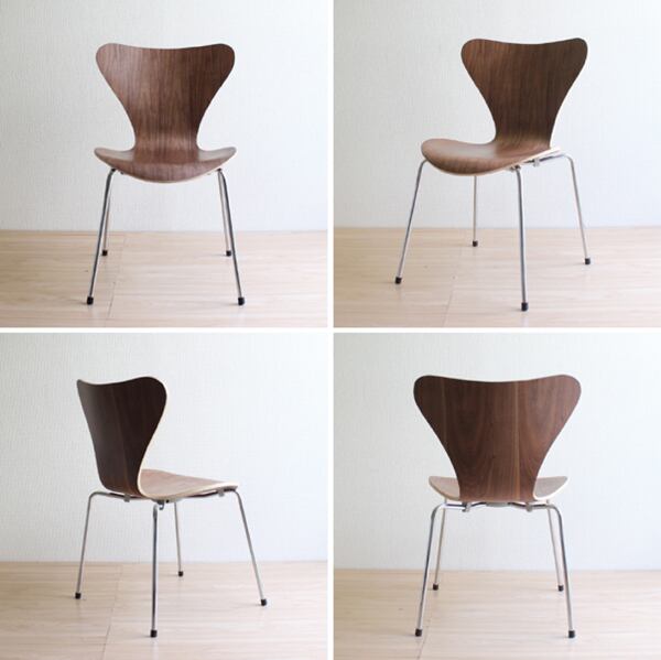 デンマークの巨匠、アルネ・ヤコブセンの代表作「セブンチェア」です。1枚の3次元成形合板で量産された、世界で最初の椅子である「アントチェア」のバリエーションとして誕生しました。
