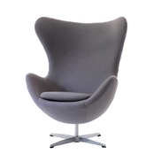 独特の卵のような有機的なフォルムがもたらす機能性・すわり心地など、すべてにおいてスカンジナヴィアン・デザインの代表作として世界中に知られています。 ホテル等の公共空間において左右を囲まれたフォルムがプライバシーな空間を生み、まるで自分の部屋にいるような一時を演出できる優れたデザインとなっています。またサイドからみた綺麗な卵形は、一目でそれとわかる独特なオリジナリティを持っています。
