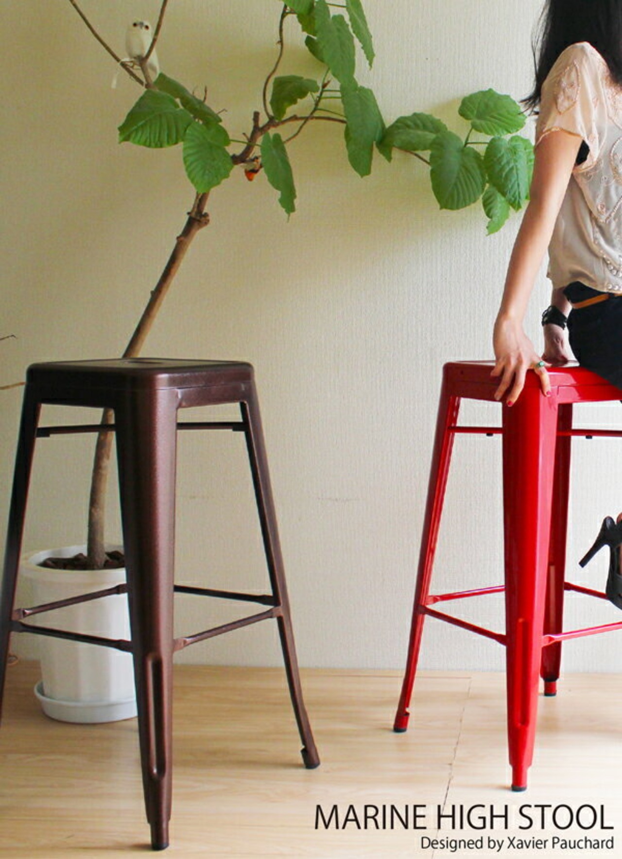 グザビエ・ポシャールが1934年に最初にデザインしたマリンチェアのハイスツール。独特の光沢、触感などが当時の人々をひきつけました。フランス海軍に採用され、長年愛用されたことで知られています。