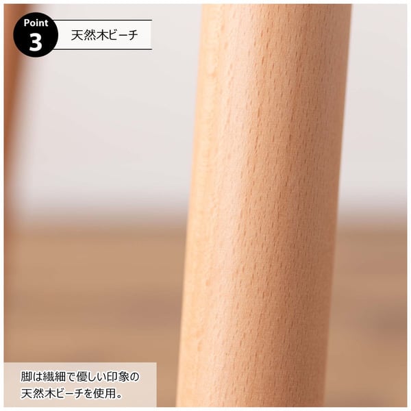 柔らかく八の字に広がる脚は北欧テイストのデザイン。座面と背もたれは汚れに強くお手入れが簡単なポリプロピレン。脚先には床への傷防止にもなるパーツ付き。