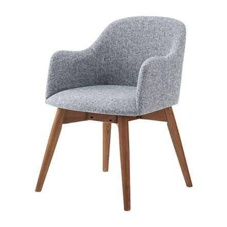 シンプルなのに、どこかやさしさを感じさせるシリーズ。落ちついた色・丸みのあるデザインを取り入れ、永く親しみやすいように仕上げました。脚部は角を落とし、ハの字に設計することで、優しい印象に。背もたれとアームが一体になったチェアは、曲線を意識したデザインでかわいらしく優しく仕上げています。背もたれとアームが一体になった身体をしっかり支えるダイニングチェア。長時間座っていても疲れにくく、ダイニングでゆったりとした時間を過ごすことができます。