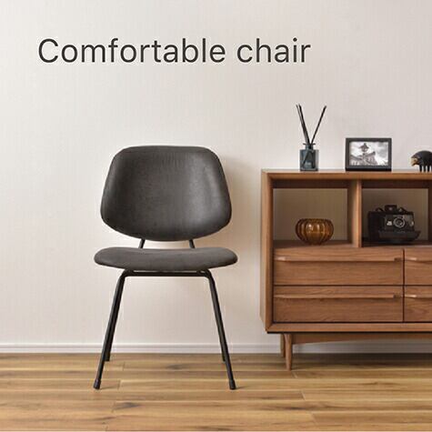 ●ボリュームのある背もたれでからだをしっかりと支え、広い座面はゆったりとした座り心地。●座面、背もたれの厚み、幅をしっかり取っているのでゆったりと座ることができ、ダイニングチェアだけではなくリビングでくつろぐ際に使用する椅子としてもおすすめ。●BK(ブラック)にはクロスレザー(レザーのような風合いのポリエステル生地)を採用。本革や合皮と違い通気性もよいため、暑い時に汗でベタついたり、寒いときの冷たくひんやりという不快感がありません。●GY(グレー)とPP(パープル)は手触りの良いファブリック生地を使用。●新色のパープルカラーは華やかで落ち着いた高級感と存在感があり、インテリアコーディネートでも使えるカラーの一つ。空間を大人の雰囲気に演出するだけではなくリゾート感を演出させる効果もあります。●脚先には床への傷防止にもなる保護キャップが付いているので安心です。