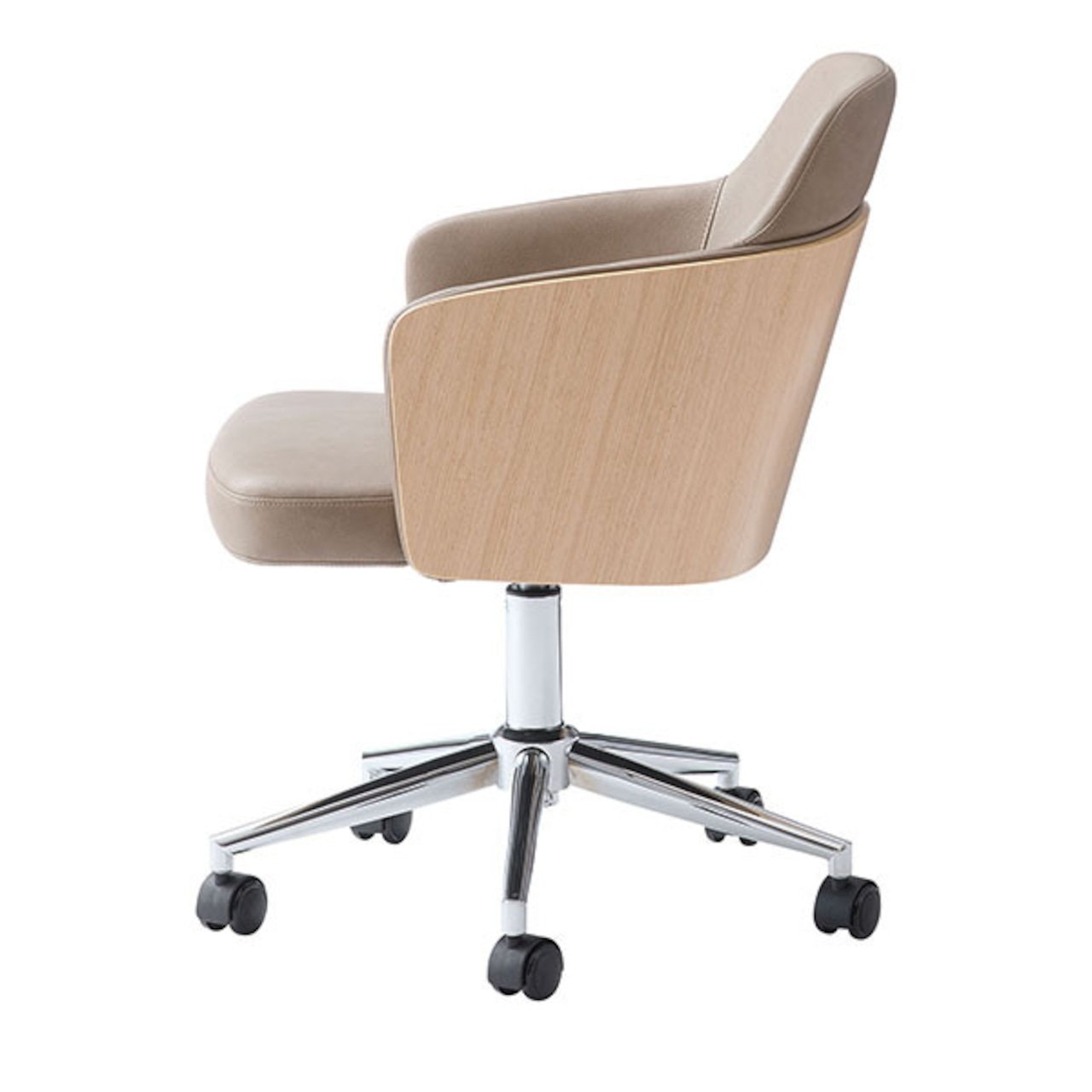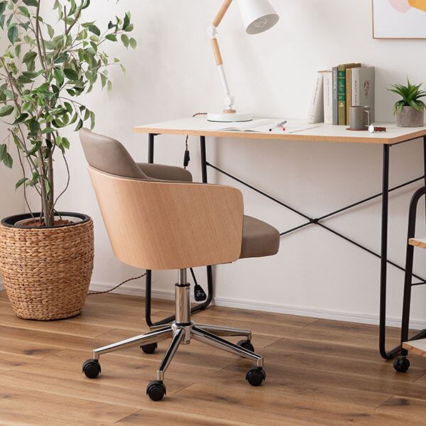 ●オフィスや自宅で活躍する、ソフトレザー×木目調のデスクチェア。